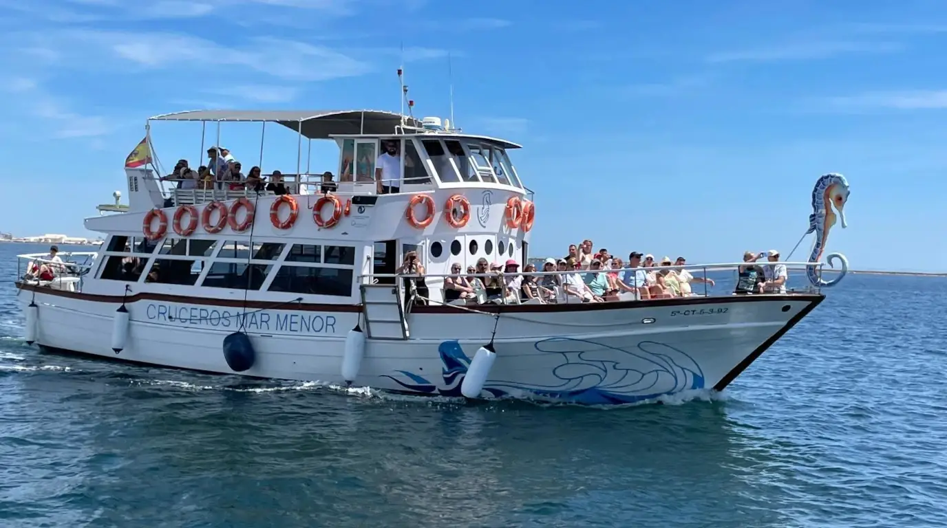 Ruta panorámica por las aguas del Mar Menor con con locución a bordo en tres idiomas incluida.